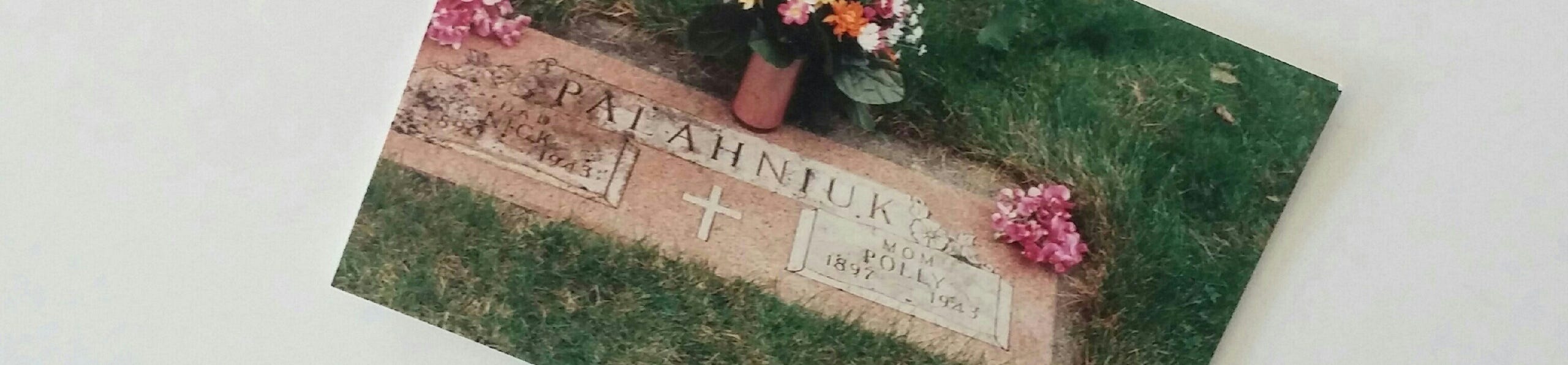 My father’s parents died when he was seven so I never knew them, not even their first names. Not until a family vacation when we drove to Idaho and visited their graves. To my surprise their names were Nick and Polly. Thus their names are an almost-mnemonic device for Palahniuk. Or as we pronounce it “PAH-la-nik.”