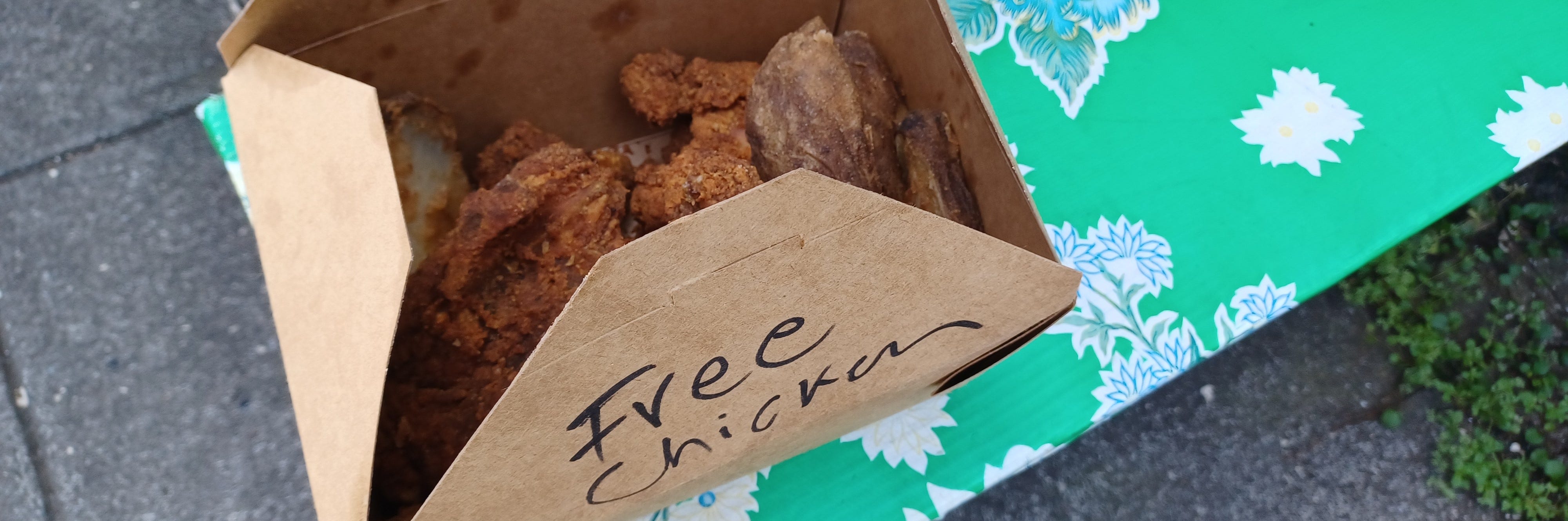 Somebody just left this chicken on a bench during our heat wave. Score!