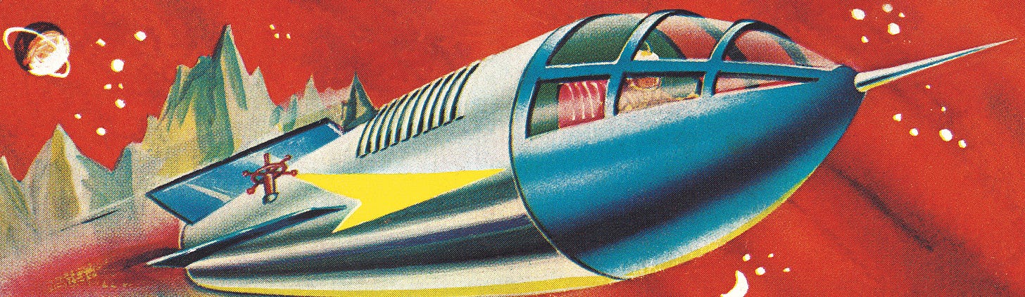 These sci-fi stories seem about the most pure form of Dangerous Writing I’ve seen. In our world of let-it-all-hang-out memoirs about pain and anger, these seemingly cotton-candy space stories land with more emotion than even the most “true story” autobiography. Imagine the moving-forward optimism of the ‘50s when the world just wanted to forget the Dust Bowl Depression and the World Wars, and no reader wanted to spend their spare time and money hearing about pain. It was into this complete censorship—the war’s over, Happy Days Are Here Again!—that writers like Edmond Hamilton had to shoehorn their wartime memories that no one wanted. And make a buck doing so.